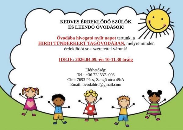 ÓVODAI BEIRATÁS Pécs Megyei Jogú Város Önkormányzata által fenntartott óvodákban Pécs Megyei Jogú Város Polgármesteri Hivatala értesíti az érdekelt szülőket, hogy a pécsi önkormányzati fenntartású óvodákban a 2026/2027. nevelési évre az óvodai beíratás 2026. április 21-én és április 22-én lesz, A személyes megjelenés mellett elektronikus úton, az óvodai e-mail címre benyújtott szándéknyilatkozattal is elfogadott a kisgyermekek beíratása a fent megjelölt napokon. A nemzeti köznevelésről szóló 2011. évi CXC. törvény rendelkezései szerint a gyermek abban az évben, amelynek augusztus 31. napjáig a harmadik életévét betölti, a nevelési év kezdő napjától legalább napi négy órában óvodai foglalkozáson vesz részt. A jogszabályi előíráshoz igazodóan óvodába be kell íratni azon gyermekeket, akik 2026. augusztus 31. napjáig a harmadik életévüket betöltik, vagy annál idősebbek. Ennek elmulasztása szabálysértési eljárást von maga után. A beiratkozáshoz szükség van a gyermek, valamint a szülő személyazonosságát igazoló hatósági igazolványra és a lakcímet igazoló hatósági igazolványára, amelyeket legkésőbb a nevelési év első napjáig szükséges benyújtani. A gyermeket elsősorban abba az óvodába kell beíratni, amelynek körzetében életvitelszerűen lakik. A gyermek csak egy óvodába iratható be. Az óvodai körzetjegyzék megtalálható a város honlapján, az óvodai intézmények honlapján, valamint papíralapon minden önkormányzati fenntartású óvodában és bölcsödében. Az integráltan nevelhető sajátos nevelési igényű gyermekek felvétele az önkormányzat által fenntartott óvodákban biztosított. Az óvodai nevelési év 2026. szeptember 1-jén kezdődik, és 2027. augusztus 31-ig tart.
